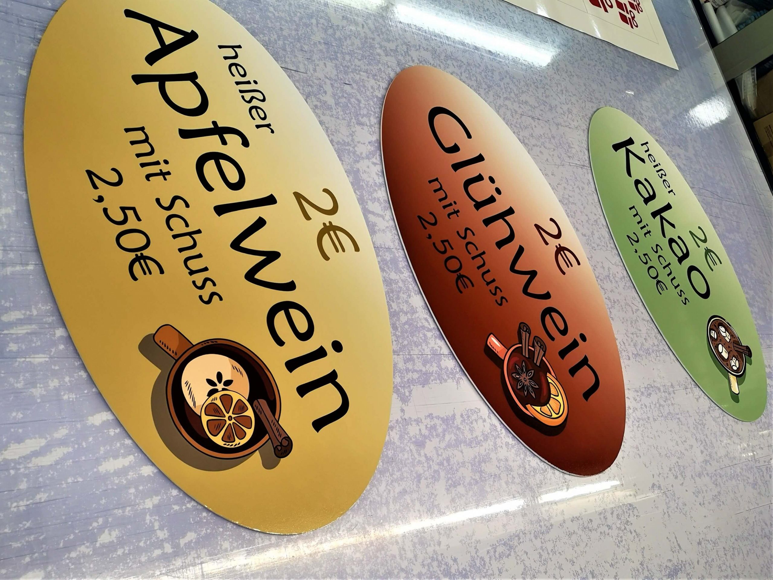 Aufkleber sind individuell herstellbar auf unterschiedlichsten Materialien und für diverseste Anwedungen. Sie sind strapazierfähig, langlebig und optimal zur Präsentation Ihres Unternehmens oder zur Weitergabe von Anweisungen und Infos.
